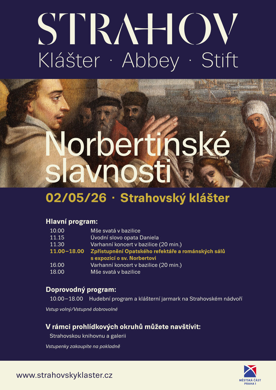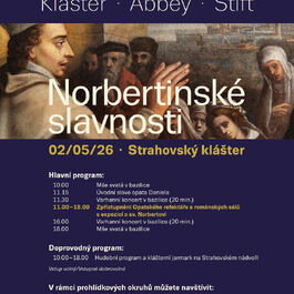Zveme vás na Norbertinské slavnosti, které se uskuteční v sobotu 2. května 2026 od 10.00 do 18.00 hodin v areálu Strahovského kláštera.